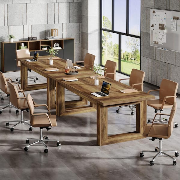 Moronia 63 in. Rectangle Executive Desk Brown Wood Computer Desk Home Office Desk, Business Desk for Home Office, 2-Pcs