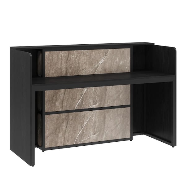 Moronia 63 in. Rectangular Black&Gray Wood Podium Wooden Lectern Desk Reception Desk Writing Desk with LED Lights
