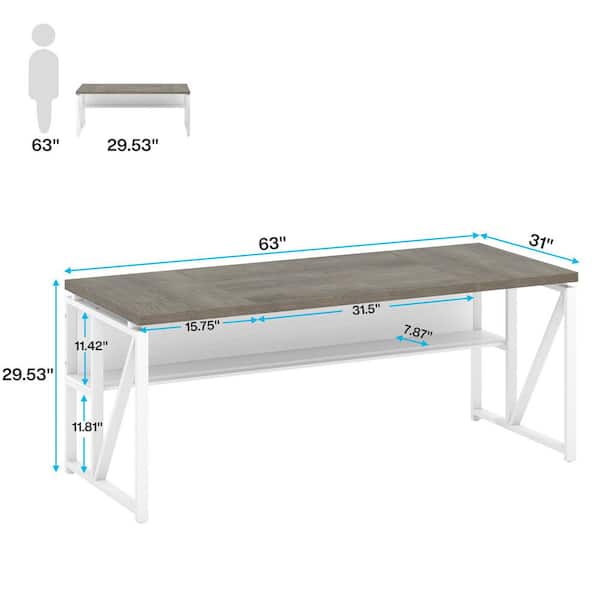 Moronia 63 in. Rectangular Gray and White Engineered Wood Computer Desk with Storage Shelf