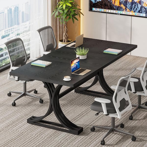 Moronia 63 in. Rectangular Wood Conference Table Black Executive Desk with Metal Legs for Meeting