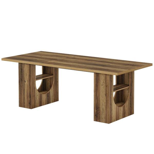 Moronia 70.9 in. Large Brown Executive Desk Conference Table with U-Shaped Leg and Storage Shelf for Office Meeting