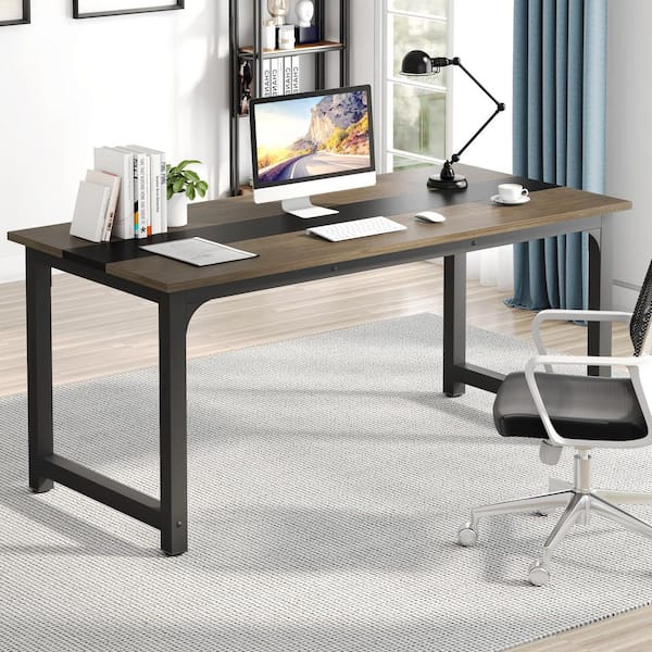 Moronia 71 in. Rectangular Gray and Black MDF Executive Desk, Large Computer Desk for Home Office