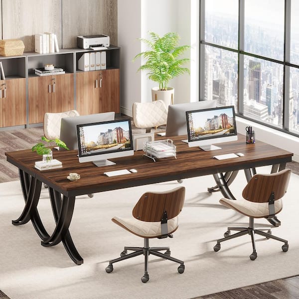 Moronia 78.7 in. Rectangular Brown & Black Wooden Computer Desk Seminar Table Desk with Metal Frame for Home Office