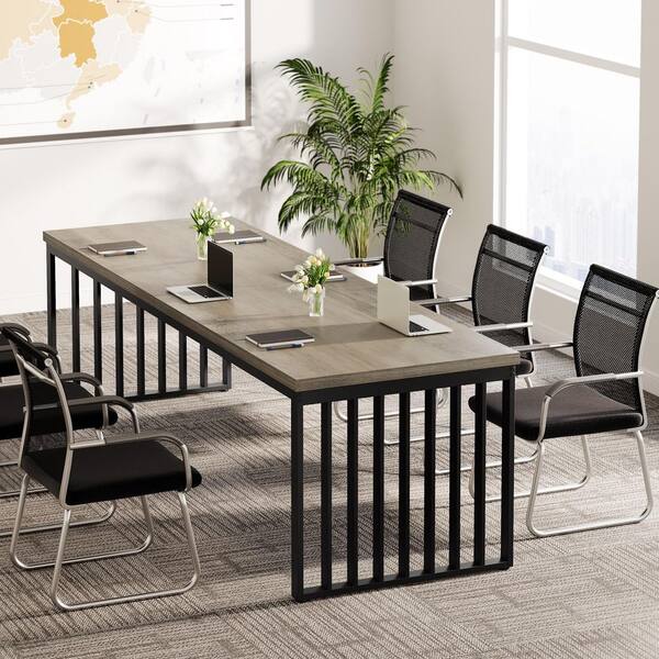 Moronia 78.74 in. Rectangular Gray and Black Wood Computer Desk, Meeting Seminar Table for 6-People to 8-People