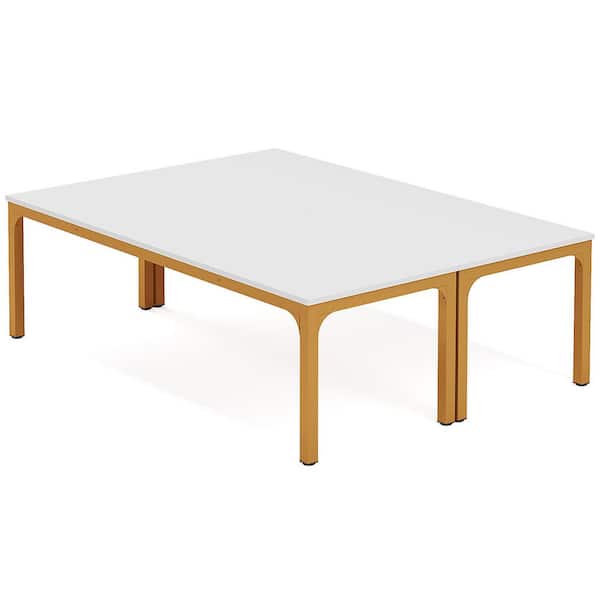 Moronia 78. 74in. 2-PCS White and Gold Conference Room Table, Long Office Desk, Seminar Meeting Table Desk for Boardroom