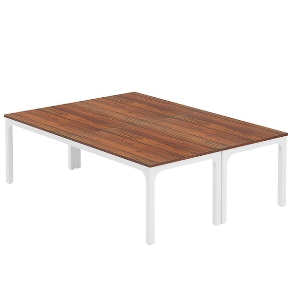 Moronia 78. 74in. 2PCS Walnut & White Conference Room Table, Long Office Desk, Seminar Meeting Table Desk for Boardroom