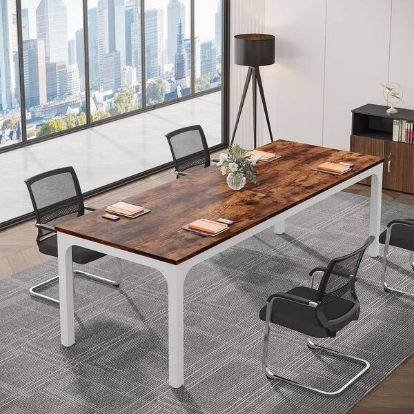 Moronia 78.7in. Rectangle Brown and White Wood Conference Table Desk Large Meeting Seminar Table with Metal Frame Office