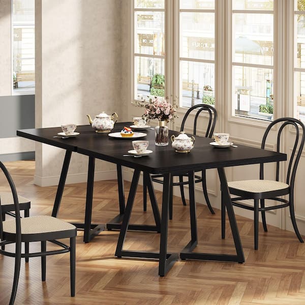 Moronia Black Wood 31.5 in. Trestle Dining Table Seats 4, Square Dining Table Set of 2