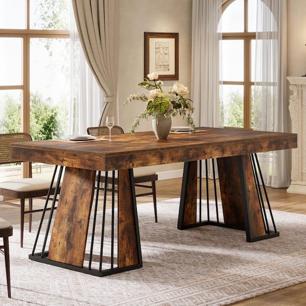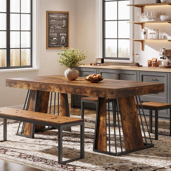 Moronia Rustic Brown Industrial Wood&Metal 70.9 in. Trestle Dining Table Seats-6