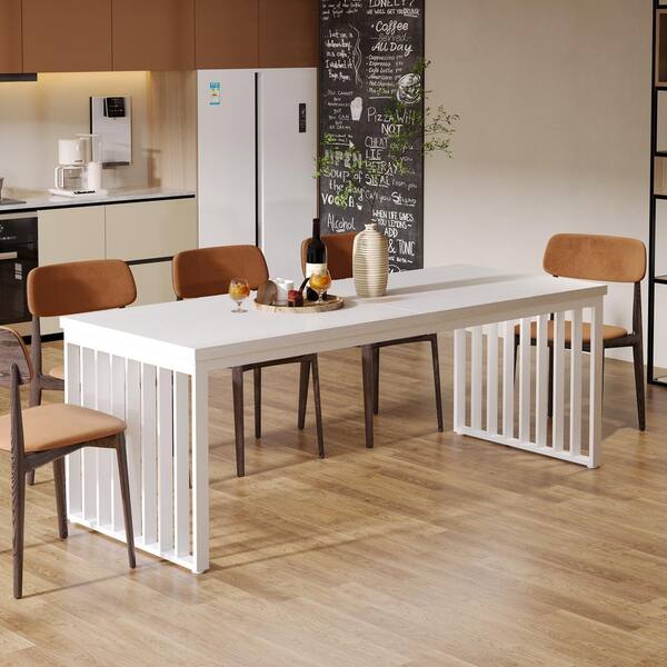 Roesler 78.7in. White Wood Dining Table Sled Long Rectangle Dining Table Industrial Kitchen Table for 8 with Metal Frame