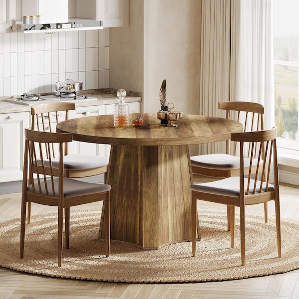 Roesler Brown Wood Round Dining Table, Farmhouse Pedestal Dining Table for 4 for Restaurants and Coffee Shops