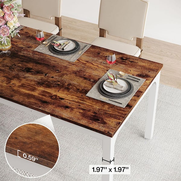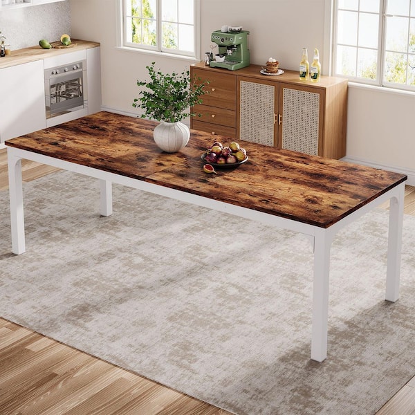 Roesler Brown and White Wood 78. 7in. 4 Leg Dining Table Kitchen Table for Dining Room Living Room, Seats 6-8