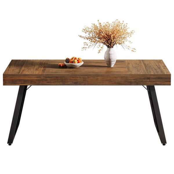 Roesler Industrial Brown Wood Finish Dining Table with Metal Frame, 63 In. Sled Long Kitchen Dining Table Seats 6