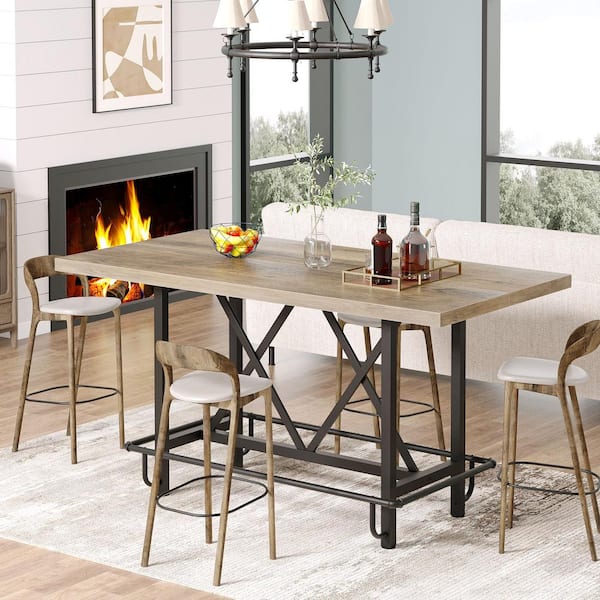 Roesler Industrial Gray and Black Wood 63 in. W. 4 Legs Dining Table with Heavy-Duty Metal Legs and Footrest Seats 6
