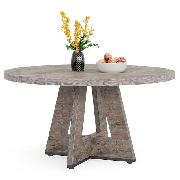 Roesler Light Gray Round Dining Table Wood 47 in. Pedestal Stylish Dining Table for 4 A Blend of Function and Aesthetics