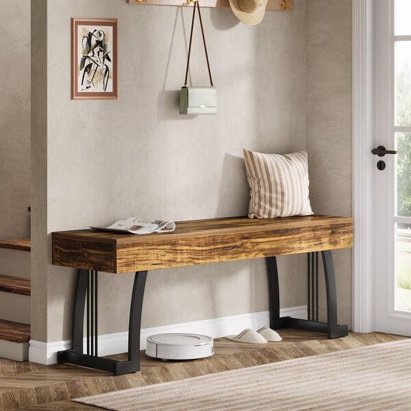Rustic Brown Entryway Bench 47.24 in. Shoe Bench Dining Bench with Stylish Metal Legs, Bench for Bedroom, Mudroom
