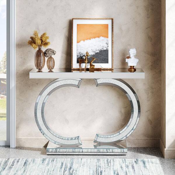 Terrella 39.37 in. Silver Rectangle Mirrored Console Table, Entryway Table with Sparkling Crystal Inlays, Sofa Table