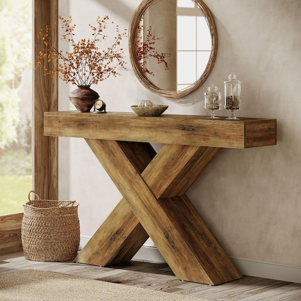 Turrella 55.1 in. Rustic Brown Rectangle Wood Console Table with X-Shaped Legs for Entryway, Living Room