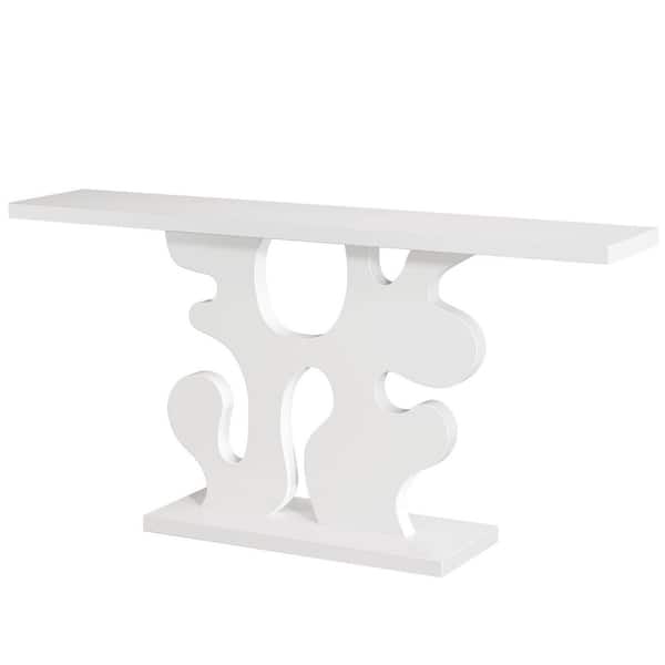 Turrella 55.12 in. White Rectangle Wood Console Table with an Geometric Base