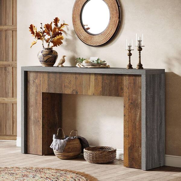 Turrella 55 in. Brown and Dark Grey Rectangle Wood Console Table with Dual-Tone Design, Narrow Long Sofa Table Behind