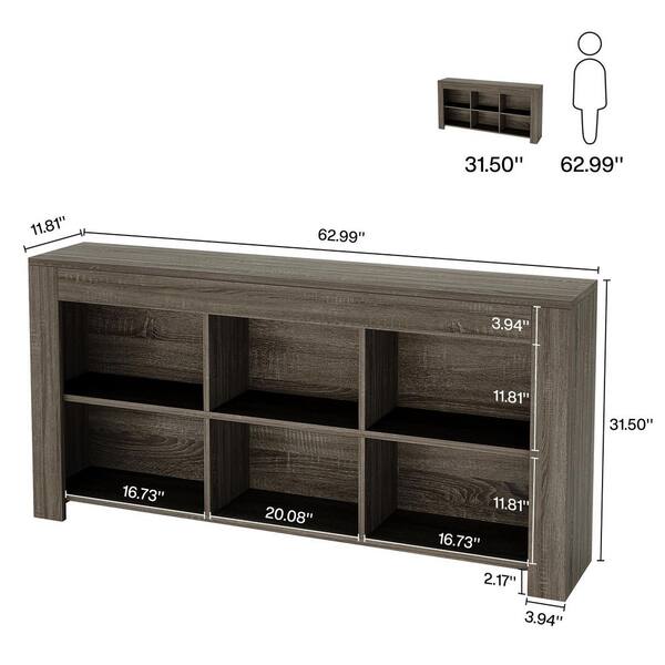 Turrella 62.99 in. Black Rectangle Wood Console Table with 6 Built-in Cube Storage Shelves