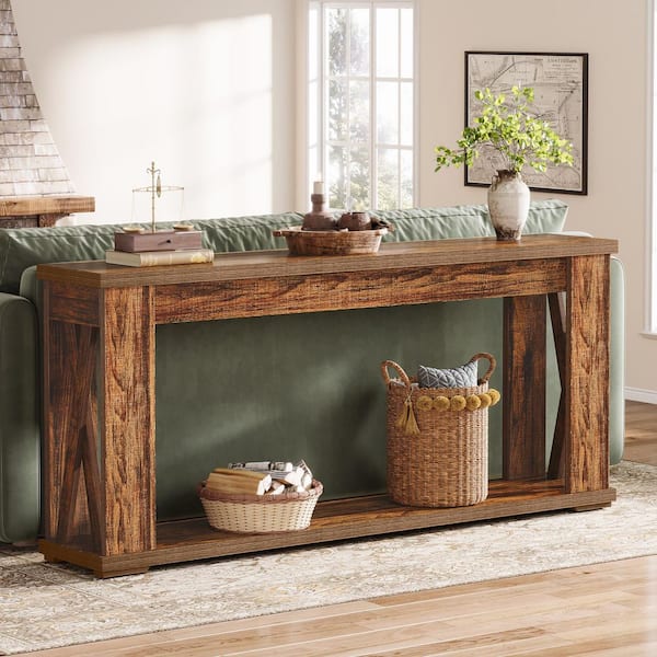 Turrella 63 in. Brown Rectangle Engineered Wood Console Table with 2-Tier Design