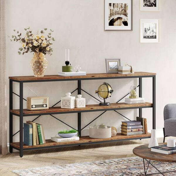 Turrella 70.8 in. Rustic Brown Rectangle Wood Console Table Extra Long TV Console with Storage Shelves