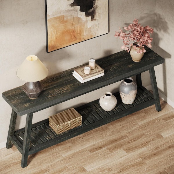 Turrella 70.86 in. Dark Brown Rectangle Wood Console Table with 2-Tier Storage for Living Room