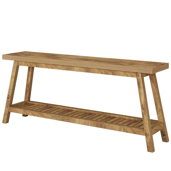 Turrella 70.86 in. Light Brown Rectangle Wood Console Table with 2-Tier Storage for Living Room