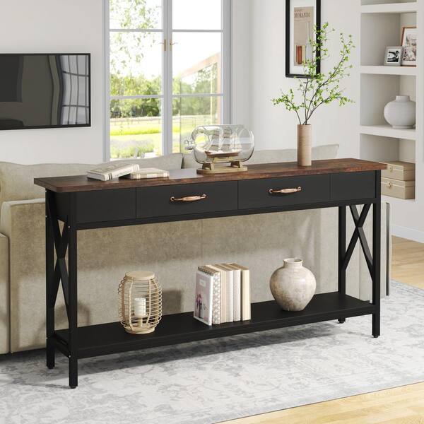 Turrella 70.87 in. Black Rectangle Wood Console Table Narrow Long Sofa Console Table with 2-Drawers for Home Entryway