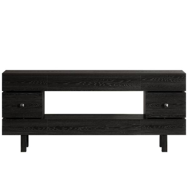 Turrella 70.87 in. Black Rectangle Wood Console Table with Drawers for Living Room
