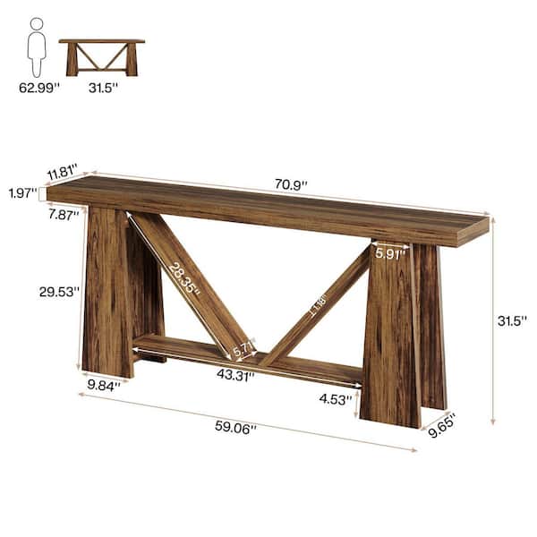 Turrella 70.9 in. Vintage Brown Rectangle Engineered Wood Console Table for Entryway Living Room