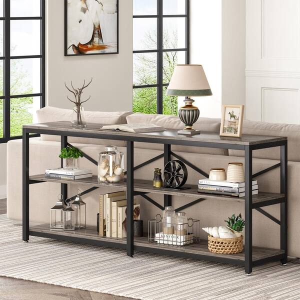 Turrella 71 in. Gray Rectangle Particle Board Console Table with 3 Storage Shelves Entryway Table for Living Room