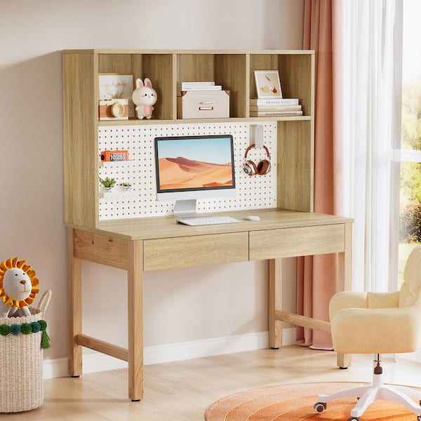 Witham Brown Kids Study Desk with Hutch, Storage Boxes, Pegboard and Drawers, Homework Desk for Study Room