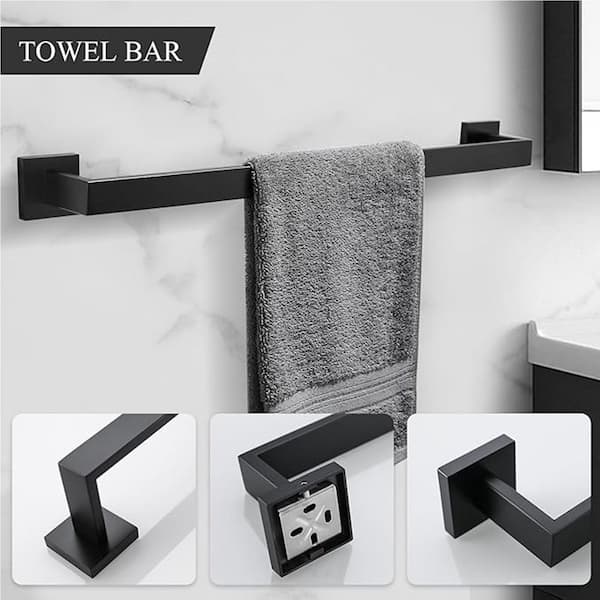 5-Piece Bath Hardware Set Bathroom Accessories Set with Towel Hooks Toilet Paper Holder and Towel Bar in Matte Black
