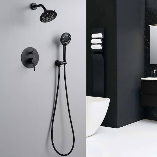 6-Spray Rainfall Dual Shower Head Wall Mount Fixed and Handheld Shower Head Faucet System 1.8 GPM in Matte Black