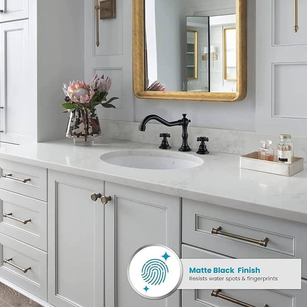 Farmhouse 8 in. Widespread Double Handle Bathroom Faucet 3-Holes With Pop-Up Drain Assembly in Matte Black