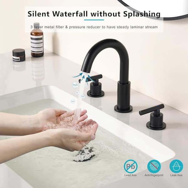 Modern 8 in. Widespread Double Handle Bathroom Faucet 3-Holes With Pop-Up Drain Assembly in Matte Black