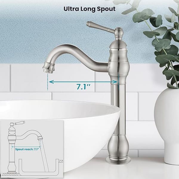 Single-Handle Single Hole Swivel Spout Bathroom Vessel Sink Faucet With Pop-Up Drain Assembly in Brushed Nickel