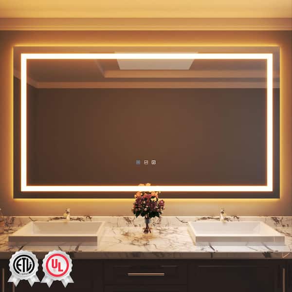 Backlit and Front Light 84 in. W x 48 in. H Rectangular Frameless Wall Bathroom Vanity Mirror