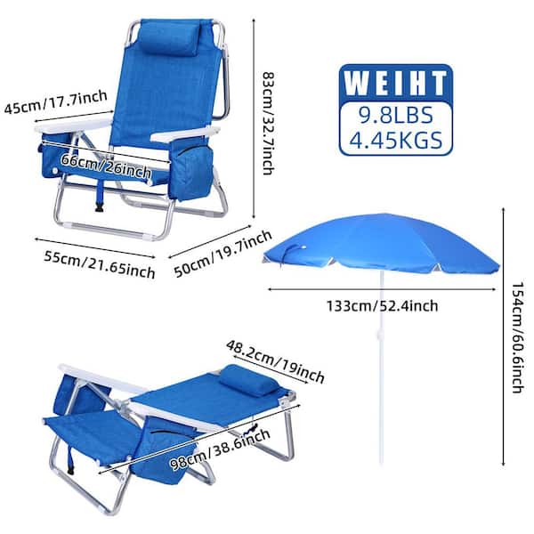 Backpack Beach Chair, Chair with Umbrella, Beach Chair for Adults, Reclining Folding Chair with Cooler (1-Piece Blue)