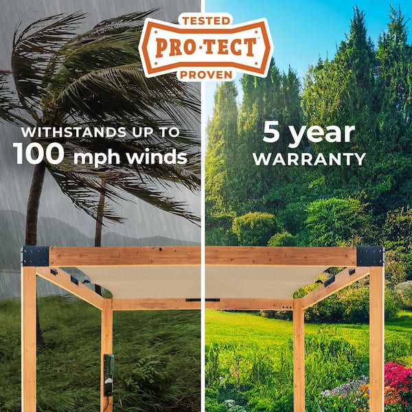 Brendan 10 ft. x 12 ft. Light Brown Cedar Wood Patio Pergola with Sun Shade Sail Screen Canopy and PowerPort