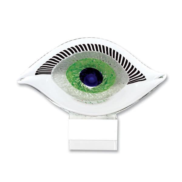 Visionary Good Luck Murano Style Art Glass Eye 7.5 in. H x 10 in. L Abstract Centerpiece