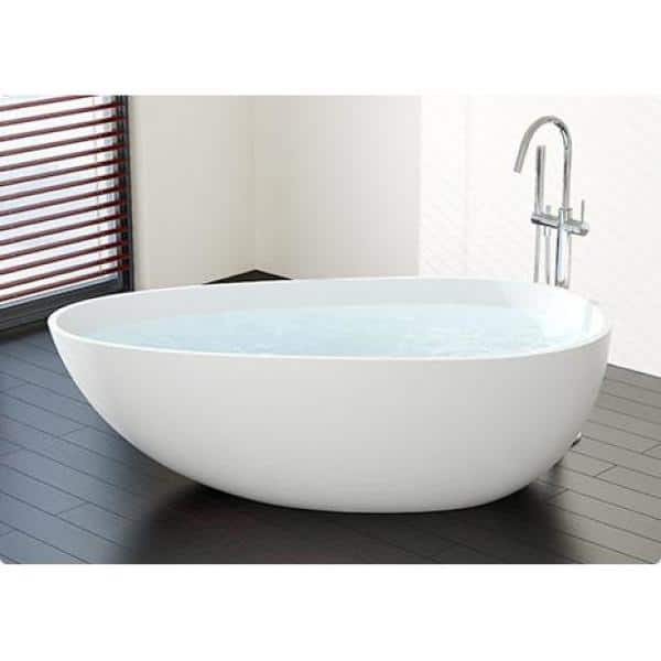 Badeloft 73 in. Stone Resin Flatbottom Non-Whirlpool Bathtub in Matte White