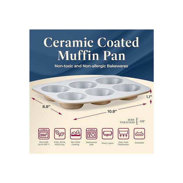 • Ceramic nonstick coating ensures easy release and even baking.
