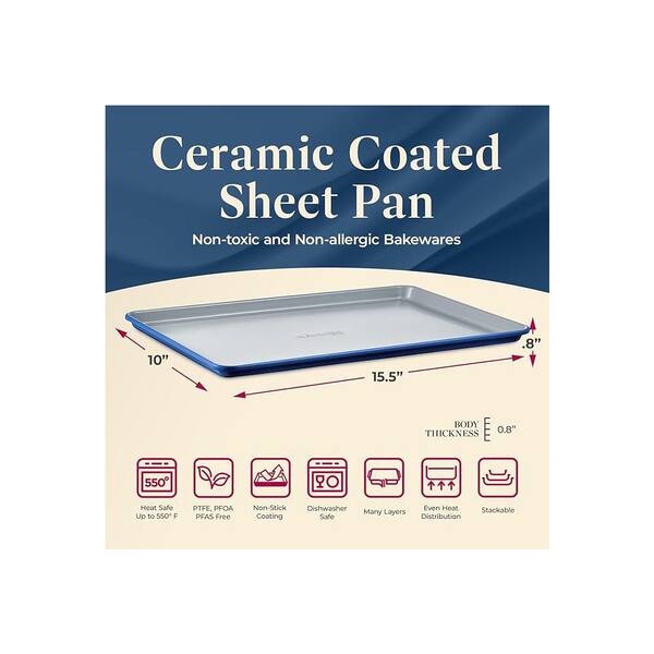 1-Piece Premium Non-Stick Ceramic Baking Sheet Pan Medium Size (15.5 in. x 10 in.) – Blue