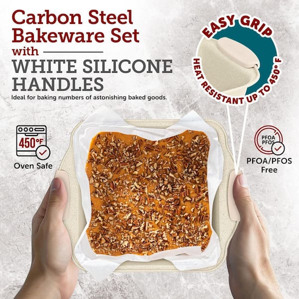 • Stackable wide tray pan design saves space in kitchen cabinets.