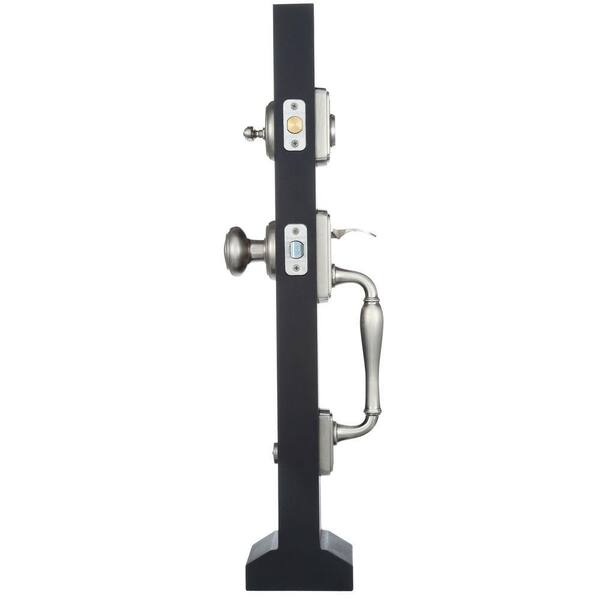 Prestige Wesley Single Cylinder Satin Nickel Exterior Door Handleset with Alcott Entry Door Knob feat SmartKey Security
