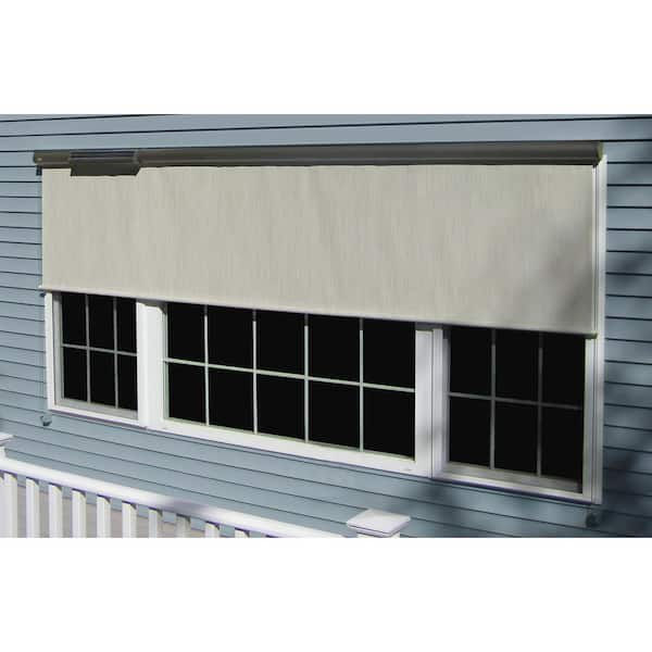 Cream Cordless Light Filtering Fade Resistant Vinyl Horizontal Exterior Roll-Up Shade 84 in. W x 84 in. L