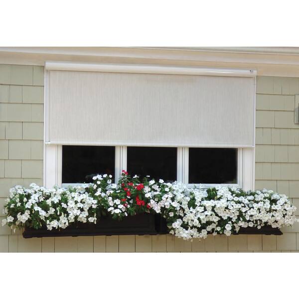 Desert Sand Corded Light Filtering Motorized Vinyl Exterior Solar Shade Right Motor White Cassette 48 in. W x 84 in. L